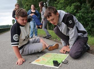 Ausgestattet mit Karte, Kompass, Schnur und Zollstock ging es an die Erledigung unserer Projektaufgaben. Wir lernten, wie man mit Hilfe eines Kompasses eine Karte einnordet, verfolgten den Verlauf von Kremitz und Schwarzer Elster von der Quelle bis zur Mündung und unternahmen verschiedene Messungen. Die Exkursion war sehr lehrreich und hat uns sehr viel Spaß gemacht. Inzwischen hängen im Unterrichtsraum von uns gestaltete Wegeskizzen, Zeichnungen von Flüssen und dem Gewässernetz von Herzberg.