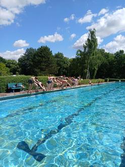 Die Schüler der Primarstufe und die Großen aus der Sek 1 absolvierten in den letzten Schultagen je eine Woche ein intensives Schwimmlager im Herzberger Schwimmbad. Dabei ging es zunächst nicht um Spaß und Spiel, sondern um kompaktes Training im Wasser. Im Vordergrund standen Technik und Ausdauer beim Schwimmen. Die Kinder waren mit sehr viel Ehrgeiz dabei, jeder in seiner ganz individuellen Phase. Bei einigen gehörte auch ganz viel Mut dazu. Nicht jedes Kind ist die spontane Wasserratte, sondern muss Ängste überwinden und über seinen Schatten springen, um ins Wasser zu gelangen. So sind es auch die kleinen Erfolge, die mit einem großen Applaus belohnt wurden. Erfolge gab es am Ende viele, vier Seepferdchen und zwölf Schwimmabzeichen verzeichnet die Bilanz! Über die Hälfte der Schüler konnte sich um mindestens eine Niveaustufe verbessern und damit noch eine gute Zensur für das Fach Sport erkämpfen.
