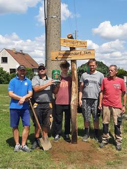 Es ist für alle Radfahrer einfacher geworden seitdem die Hinweisschilder im Ort angebracht wurden. Dazu haben wir am 19. Juli einen Einsatz durchgeführt und 4 Hinweisschilder aufgestellt, welche die Richtungen nach Bernsdorf, Premsendorf, Borken, Frauenhorst und Herzberg anzeigen, damit die Pendler nicht mehr nach dem Weg fragen müssen. Dankeschön an Bernd Schuster der uns das Holz und die Pfähle besorgt hat, Rainer Voigt der alles ringsum organisiert hat, Thomas Lemm der die Bretter bearbeitet hat mit Schrift und Lasur. Danke an Kevin, David und Silvio die mitgeholfen haben beim Aufstellen der Schilder. Danke an Melanie und Leonie für die Bewirtung danach. Wieder ist ein Projekt geschafft in unserem Dorf. Das Ziel ist, das wir gemeinsam etwas erreichen wollen und nur gemeinsam schaffen wir das. Wir haben noch viele Projekte in unserem Dorf, die wir gerne verwirklichen möchten. Vielleicht kommt der eine oder andere beim nächsten Mal dazu. Vorschläge und Anregungen nehmen wir gerne entgegen.