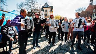 Über 100 Einwohner*innen sangen mit musikalischer Unterstützung das Steigerlied