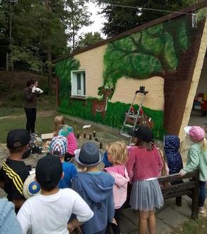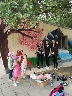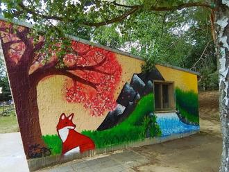 Eine tolle Aktion fand in den Sommerferien auf unserem Naturspielplatz statt. Die Schülerinnen des Humboldt Gymnasiums Hettstedt Cheyenne Pecher, Hanna Sauer und Lisa Holznagel verschönerten unsere Spielzeugbungalows und das Toilettenhäuschen. An zwei Tagen schenkten Sie uns ihre Freizeit und „zauberten“ Graffiti-Kunstwerke an die tristen Wandflächen. Die Kinder staunten sehr über die Sprühtechnik. Die Erzieherinnen bewunderten das Talent der angehenden Abiturientinnen, die die Graffiti-Kunst in einem Workshop lernten. Entstanden sind Naturmotive, die unsere Spielbereiche sehr aufwerten und an denen wir uns jeden Tag aufs Neue erfreuen.