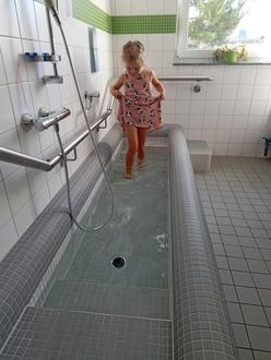 Frau Dathe war es wichtig, zwei Wasseranwendungen zu sehen und ob das Kneippkonzept von Kindern und dem Team im Tagesablauf gelebt wird.