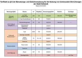 Für die Inanspruchnahme kommunaler Einrichtungen ist eine Gebühr und eine Kaution gem. der Anlage 2 (Tarifblatt, Stand: 25.09.2023) zu entrichten.