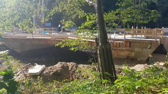 Die Arbeiten am Bau der Brücke über die Polenz mit einer Stützweite von rund 15 Metern sind inzwischen weit fortgeschritten, werden sich jedoch noch bis in den Mai 2024 erstrecken. Nun wird die Errichtung der Stahlbetonstützwand auf einer Länge von 52 Metern vorangetrieben und - soweit möglich - parallel der Straßenbau auf rund 200 Metern Gesamtlänge erfolgen. Für diese Maßnahmen ist die Vollsperrung der Straße unumgänglich. Diese beginnt am 16. Oktober 2023 und wird voraussichtlich bis April 2024 andauern. Eine Umleitung führt über Waltersdorf, Ziegenrücken und Hohnstein.