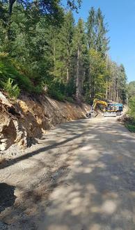 Der Straßenbau am Goßdorfer Berg schreitet voran. Es werden die ersten Gabionenwände gesetzt. Mit der Hochwasserschadensbeseitigung werden die Bauarbeiten auch hier bis in den Frühjahr 2024 andauern. Die Einwohnerschaft muss davon ausgehen, dass erst mit der Öffnung der Straße in Porschdorf auch der Goßdorfer Berg wieder befahrbar sein wird.