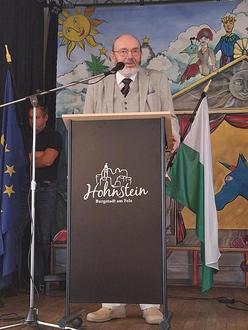 Am 06. September 2025 konnte Wolfram Lasch seinen 80. Geburtstag begehen. Er war von 1990 bis 2008 Bürgermeister der Stadt Hohnstein. Daher ein Anlass für eine Feierstunde im Burgsaal der Burg Hohnstein. Rund 50 ehemalige Weggefährten, Kollegen, Stadträte und Freunde waren der Einladung von Bürgermeister Daniel Brade gefolgt. Sichtlich gerührt nahm der Jubilar die Glückwünsche entgegen. Am Weitesten gereist waren der ehemalige Bürgermeister Rudolf Landwehr und das Ehepaar Neumann aus der Partnerstadt Meersburg am Bodensee. Aber auch die beiden Ehrenbürger unserer Stadt, Bernd Arnold und Reingard Förster waren gekommen.