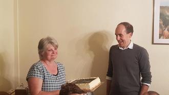 Am 1. Oktober begann für Petra Wauer aus Ulbersdorf ein neuer Lebensabschnitt. Unsere langjährige Standesbeamte trat in den Ruhstand ein. Am 19. Oktober wurde sie im Kreise der Kollegen/-innen im Rathaus mit einem Frühstück verabschiedet. Im Namen der Kollegen/-innen übergab der Bau- und Hauptamtsleiter Alexander Hentzschel ein Geschenk (siehe Foto): einen Rundflug über die Sächsische Schweiz und eine Torte. Die Torte zeigt Petra Wauer bei ihrer Lieblingstätigkeit als Standesbeamtin bei einer Trauung (siehe Foto). Mit Leib und Seele hat sie diese Berufung ausgeübt. Vielen herzlichen Dank für die Ausfüllung dieses wichtigen Amtes in unserer Stadt, liebe Petra. Seit 43 Jahren ist Petra Wauer im kommunalen öffentlichen Dienst tätig, erst in der Gemeinde Ulbersdorf und dann für die Stadt Hohnstein.