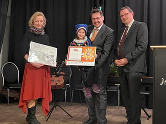 Am 26. Januar lud der Bürgermeister zum Neujahrsempfang. Rund 130 Gäste folgten der Einladung. Neben den Ansprachen von Daniel Brade und Kati Kade, der Beigeordneten des Landrates, erfolgte die Preisübergabe des Städtewettbewerbes „Ab in die Mitte“ durch Thomas Ott von der IHK Dresden. Der Hohnsteiner Kasper alias Emilie Häntzschel nahm den Scheck über 20.000 Euro in Empfang. Die Kaspermanagerin Ute Qualmann half ihr dabei (siehe Foto).
