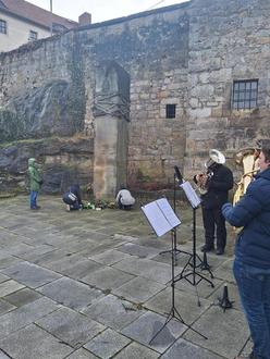 Die Elbsandsteiner Blasmusikanten begleiteten die Gedenkstunde würdig und am Ende wurden zahlreiche Blumen am Denkmal niedergelegt. Der große Zuspruch zur diesjährigen Gedenkfeier war ein wichtiges Zeichen.