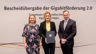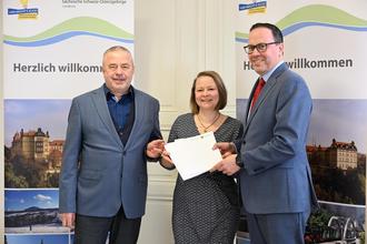 Am 15. Januar 2025 übergab der Bundesminister für Digitales und Verkehr, Dr. Volker Wissing, an die Beigeordnete für Bau und Umwelt, Brit Jacob-Hahnewald, und die Projektverantwortliche für Breitband im Landratsamt, Kati Zuber, in feierlichem Rahmen die Zuwendungsbescheide für das nächste Projekt des geförderten Breitbandausbaus im Landkreis Sächsische Schweiz-Osterzgebirge. Die Bundesförderung über 105 Millionen Euro ermöglicht den geförderten Ausbau von 18.500 Adressen im Landkreis mit schnellem und zuverlässigem Internet. Landrat Michael Geisler betonte: "Mit dem Erhalt der Zuwendungsbescheide erreichen wir einen weiteren Meilenstein im Glasfaserausbau unseres Landkreises. Diese immense Investition mit einem Gesamtvolumen von 167 Millionen Euro wird entscheidend dazu beitragen, die digitale Zukunft unserer Region zu verbessern. Wir können so die Lebensqualität der Bürgerinnen und Bürger als auch die Wettbewerbsfähigkeit der Unternehmen und des Tourismus stärken."