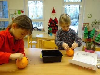 Er ist einfach über Nacht im Regal eingezogen und schickt seitdem täglich einen Brief an die Gruppe. Darin fordert er sie auf kleine Aufgaben zu erfüllen, was die Sternschnuppen-Kinder auch gerne tun. So haben sie schon für Schnuppi gesungen, gebastelt und Zaubersamen gesät. Als nächstes wünscht er sich Plätzchen, also wird gebacken. Nicht genug mit den Auftragsbriefen - Schnuppi scheint ein richtiger Schelm zu sein und spielt den Kinder öfter einen kleinen Streich. Da benutzt er einfach ihre Toilette, hinterlässt Schneespuren im Zimmer oder färbt das Wasser aus dem Wasserhahn. Was der sich erlaubt! Aber eigentlich auch lustig, finden die Kinder. Wir sind sehr gespannt, was ihm bis Weihnachten noch so alles einfällt…!