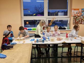 Weiter ging es zur Keksbäckerei. Kekse in ganz vielen verschiedenen Formen wurden gebacken. Den Teig dafür haben unsere Lehrerinnen zu Hause vorbereitet. Einige Kinder haben die fertig gebackenen Kekse verziert und andere haben Kekse aus dem Teig ausgestochen. Die fertigen Leckereien wurden in Tüten gepackt und durften mit nach Hause genommen werden.