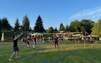 Auch wenn ein festes Volleyballfeld noch bis nach dem 3. Bauabschnitt warten muss, haben wir zumindest ein mobiles Feld in der Saison 2024 erfolgreich getestet und wollen sehen, ob wir eine eigene Mannschaft auf die Beine stellen und regelmäßig trainieren können.