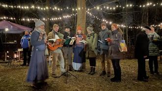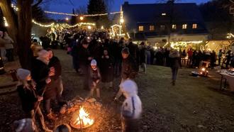 Wer sich nach der Eröffnung etwas aufwärmen wollte, der war mit einem Besuch im behaglichen Café bei Kaffee, Tee und Stollen bestens beraten. Hier fand auch der „Markt der kleinen Dinge“ statt. Liebevoll dekorierte Stände luden zum Bummeln und traditionelle Handwerkskunst zum Verweilen ein. Das Klingen des Glöckchens - der Klang der Weihnacht - versprach auch dieses Jahr wieder eine kuschelige Märchenzeit und die Kinder lauschten gespannt den Geschichten der Frau Holle. Die weihnachtliche Atmosphäre setzte sich auf dem mit Lichterketten und Weihnachtssternen reich geschmückten Außengelände fort. An jeder Ecke duftete es anders verlockend bei der Auswahl für das leibliche Wohl. Herzhafte Bratwurst und Krakauer, selbst gemachte Erbsen- und Gulaschsuppe sowie Fettbemmchen standen bei der deftigen Auswahl zur Verfügung. Für die süße Versuchung sorgten hausgebackene Krapfen und Waffeln sowie Schokoäpfel. Einen wundervollen Blick auf den bezaubernden Weihnachtsmarkt und gleichzeitig wohlige Wärme bekam man beim Stockbrot backen.