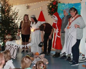 Am 13.12. gab es ein weiteres Highlight. Die Weihnachtsfeier für unsere Kinder. Eifrig studierten in diesem Jahr unsere Erzieherinnen und Erzieher das Stück: „Das Weihnachtsabenteuer vom Hirsch Heinrich“ ein. Der Tag begann um 8.00 Uhr mit einem gemeinsamen Frühstück in den Stammgruppen. Neben vielen Leckereien, Kakao und Tee war die Aufregung der Kinder schon zu spüren. Um 9.15 Uhr trafen sich alle Gruppen, bis auf unsere Allerkleinsten, im Sportraum. Dort war bereits alles dekoriert und die Akteure des Stückes warteten geduldig auf ihren Einsatz. Die Geschichte spielt vom Hirsch Heinrich, der im Zoo lebte und gerne die Welt außerhalb des Käfigs kennenlernen wollte.