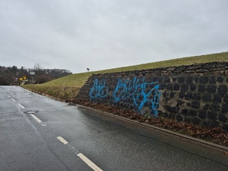 | - | Farbschmierereien an der Stützwand der Pochwerkshalde Krummenhennersdorfer Straße |