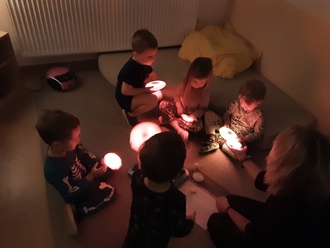 Gemeinsam mit ihren Eltern bastelten die Kinder im Haus leuchtende Sterne. Mit viel Begeisterung und Kreativität entstanden kleine Kunstwerke, die später stolz präsentiert wurden. Ein besonderes Highlight war das Dunkelzimmer: Ausgerüstet mit Taschenlampen hatten die Kinder dort sichtlich Spaß, entdeckten Lichtspiele und ließen ihrer Fantasie freien Lauf.