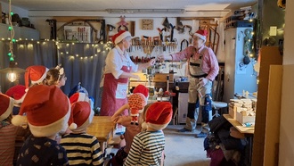 Ein besonderes Erlebnis wartete auf unsere Vorschüler: Sie besuchten die Tuttendorfer Wichtelwerkstatt. Dort gestalteten sie gemeinsam mit Oma Wichtel und Opa Wichtel einen lustigen Holzschneemann. Bei Plätzchen und Kinderpunsch wurde gesungen, gelacht und die gemütliche Wichtelatmosphäre in vollen Zügen genossen.