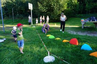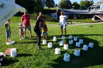 Danach gab es kein Halten mehr. Es warteten viele Stationen zum Mitmachen auf die Kinder, an einige davon gab es nach Teilnahme einen Stempel auf eine Sammelkarte, so beim Dosen werfen, dem Fitnessparcours, dem Fußballdart und dem Familienwettspiel. Die Stempelkarten kamen in einen Lostopf, aus dem am Ende der Veranstaltung 10 Gewinner gezogen wurden, die tolle Preise erhielten. Der Hauptgewinner konnte sich über eine Jahreskarte für das Freizeitbad freuen. Aber auch Stationen wie ein großes Obst-/Gemüsememory, Bastelstraße mit Holzfiguren -, Tassen - und T-Shirt-gestalten sowie Schminken als auch Entenangeln für die Kleinsten und Seifenblasen in verschiedenster Form waren sehr gefragt.