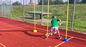 Bei bestem Wetter versammelten sich alle Schülerinnen und Schüler unserer Grundschule am Morgen des 5. Septembers auf dem Sportplatz. In jahrgangsgemischten Teams wurden verschiedene sportliche Aufgaben auf dem Sportplatz und dem Schulhof gelöst. Unterstützt von den Eltern konnten die Kinder ihr Können an folgenden Stationen beweisen: Torwandschießen, Gummistiefel-Lauf, Sackhüpfen, Basketball-Zielwerfen, Dosen-Slalom, Reifen-Zielwurf und Päckchen mit einer Matte transportieren.