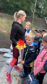 Nach den olympischen Spielen in Paris geht es an der Grundschule Halsbrücke olympisch weiter. Mit entzündeter Fackel zogen wir am Donnerstag, den 12. September, ins Olympiastadion (Sportplatz der Oberschule) ein.