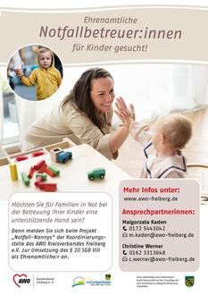 Einem alleinerziehenden Vater steht ein Krankenhausaufenthalt bevor, eine Mutter benötigt eine Kinderbetreuung während eines wichtigen Termins. Die Liste von Situationen, in denen Eltern in Not bei der Betreuung ihrer Kinder geraten, ist lang. Seit diesem Jahr arbeitet die AWO Kreisverband Freiberg e.V. an dem Aufbau eines Unterstützungsprojekts – den „Notfall - Nannys“. Hierbei sollen Ehrenamtliche die Familien in Notsituationen unterstützen. Nach kostenfreien Schulungen, z.B. zum Thema Kindeswohlgefährdung oder einem Erste-Hilfe-Kurs, dürfen Ehrenamtliche bei Bedarf die Betreuung der Kinder der Familie übernehmen, wenn die Eltern es nicht können.