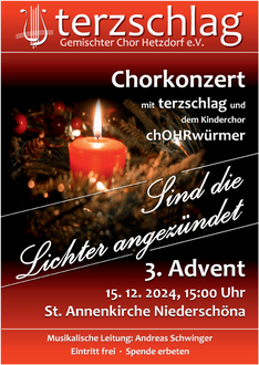 …heißt es bald wieder beim Adventskonzert von terzschlag – dem Gemischten Chor Hetzdorf.