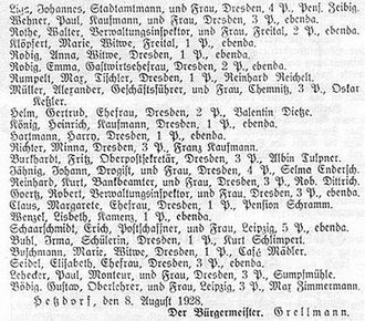 Einen Einblick über Namen, Berufe und Anzahl der Sommergäste und die jeweiligen Vermieter gibt uns ein Auszug aus den „Amtlichen Kurlisten“ (aus: „Rund um den Tharandter Wald“, Nr. 32 vom 11. August 1928). Demnach logierten am 8. August 1928 die hier genannten Personen in Hetzdorf: