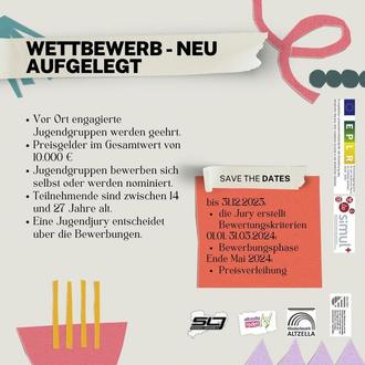 Die Bewerbungsphase beginnt am 01.01.2024 und endet am 31.03.2024. Die Preise werden dann im Mai 2024 zur Sieger*innen-Ehrung verliehen. Mehr Informationen und Werbematerial sind über die Ansprechpartnerinnen Marlies Schneider (marlies.schneider@landjugend-sachsen.de) und Mandy Wiesner (mandy.wiesner@landjugend-sachsen.de) der Sächsischen Landjugend e.V. erhältlich. Außerdem halten wir alle Interessierten über unseren Instagram-Kanal @saechsische_landjugend auf dem Laufenden.
