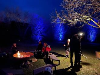 Oben im Garten loderte in der großen Feuerschale ein Lagerfeuer. Es lud zum Verweilen ein. Wer mochte, konnte sich auch ein Stockbrot backen. Unterhalb der Freitreppe am Haupteingang gab es einen Marktstand mit heißen und kalten Getränken, aber auch deftigen Leckereien.