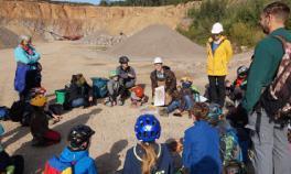 Vereinsmitglied und Mineralologe Dr. Fank Haubrich erläutert den „Mineralinos“ die spannende Geschichte des Steinbruchs und seiner Schätze.