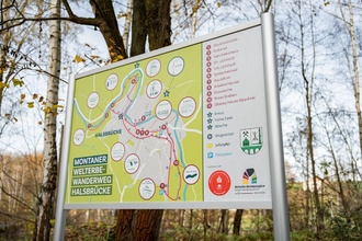 Der „Montane Welterbe-Wanderweg“ verbindet elf Bestandteile der Welterberegion, an denen Besucherinnen und Besucher die faszinierenden Zeugnisse der Bergbau- und Hüttengeschichte der Gemeinde Halsbrücke entdecken können. In Halsbrücke findet man auf kleinem Raum besonders viele Welterbe-Objekte: Hüttenwesen, montane Wasserwirtschaft, Bergbau. Dies konnte eindrucksvoll mit dem Wanderweg verbunden und sichtbar gemacht werden. Entlang des Rundwegs informieren Tafeln und Hinweisschilder über zahlreiche Welterbe-Objekte in der Gemeinde – darunter die Altväterbrücke, die Historische Erzwäsche oder das Obere Neue Geschrei.
