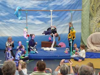 Nach intensiven Proben und viel Kreativität war es schließlich so weit: Die Abschlusspräsentation fand am Freitag, den 20.02.2026 unter dem Motto „Meer-Vergnügen“ statt. Die Sporthalle verwandelte sich in eine bunte Welt voller Angler, Fische und Meerjungfrauen. Viele Besucher*innen kamen, um die jungen Artisten anzufeuern und die einstündige Show zu sehen.