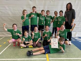 Zunächst starteten die Sportler/innen mit einer Niederlage gegen die GS Silbermann. Doch dann wurde der Ehrgeiz und Kampfgeist geweckt, sodass wir im nächsten Spiel gegen die GS Winkler die Oberhand gewinnen konnten. Das nächste Spiel gegen die GS Pestalozzi verloren wir leider. Doch im letzten Spiel wendete sich rasch das Blatt zu einem Sieg gegen den gruppenstärksten, die GS Körner. Nun waren wir mit einer anderen Grundschule gleichauf, sodass wir um den Einzug ins Finale kämpften. Leider verloren wir die Partie knapp und erlangten schlussendlich in unserer Gruppe den 3. Platz.