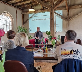 Der Geschäftsführer des Welterbevereins, Steve Ittershagen, betonte in seiner Begrüßungsrede u. a., dass die Zusammenarbeit und der Austausch mit den Vereinen und Kommunen auf der tschechischen Seite der Welterbe Montanregion eine neue Qualität erreicht hat und auch dort werden neue Welterbebesucherzentren entstehen.