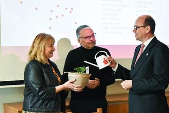 Landrat Dirk Neubauer freut sich bereits auf das neue Format und hofft auf großen Anklang. Symbolisch übergab er dafür Kathrin Hillig, Geschäftsführerin der Kultur gGmbH, eine junge Pflanze. Damit die Pflanze des Literaturfestivals wachsen und gedeihen kann, steuerte Hans Ferdinand Schramm nicht nur eine passende Gießkanne, sondern auch einen symbolischen Scheck über 15.000 Euro bei.