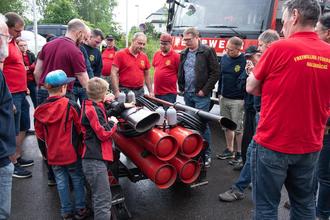 Die anwesenden Kinder, Kameraden und Kameradinnen, als auch Mitglieder der Feuerwehrhistorik der Gemeindefeuerwehr Halsbrücke waren bei der Übergabe dabei und sehr gespannt auf das historische Gerät.
