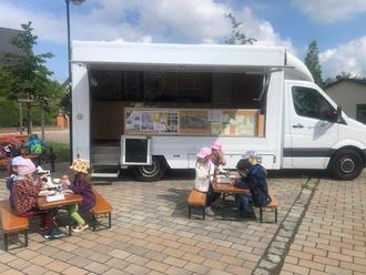 Am 23. Mai 2024 hießen Hr. Baumgart und seine Kollegin unsere Vorschüler in Hetzdorf mit dem Geopark-Mobil herzlich willkommen. Die vorbereiteten Mikroskope zum Untersuchen von Sand zogen die Aufmerksamkeit der Kinder bereits auf sich, bevor es überhaupt richtig los ging. Am Geopark-Mobil, dem Geopol-Infopunkt Hetzdorf und den Außenanlagen bekamen die Kinder viele wissenswerte Informationen über verschiedene Gesteine und deren Entstehung. Auf einer geologischen Karte zeigte uns Hr. Baumgart, dass in der Region Hetzdorf vorwiegend Sandstein vorkommt und im angrenzenden Tharandter Wald auch kleine Stellen mit Kalkstein existieren.
