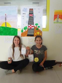bis zur vierten Klasse zum Malen und Zeichnen. Es entstanden tolle Bilder – mit der hohen Esse im Grünen, auf der Halde, bei Sonnenuntergang oder mit Nordlichtern – die im Flur als kleine Ausstellung hängen. Zum Abschluss bekamen alle Klebepunkte, die sie für ihre Favoriten vergeben konnten.