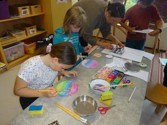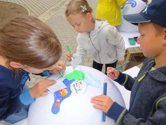 Auch die kreativen Stationen haben viel Aufmerksamkeit von den Kindern der Klasse eins bis vier erfahren. Dort gaben wir ihnen die Möglichkeit sich beim Sticken von Sternzeichen und beim Gestalten eines Kinderplaneten auszuprobieren.