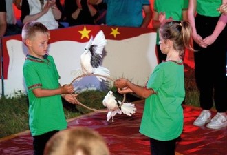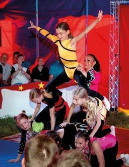 Das Zirkuszelt war gut besucht als Pepe, der Zirkusdirektor, sein hochverehrtes Publikum herzlich begrüßte. Cowboys, Ballerinas, Akrobaten, Piraten und Jongleure erhielten viel Beifall und ließen so manche kleine Angstträne und Skepsis vergessen. Am nächsten Tag stürzten sich dann die Zweit- und Drittklässler voller Eifer in die Proben. Am Freitag zur Generalprobe zeigten sie, was sie alles in der doch kurzen Zeit gelernt hatten. Am Abend begeisterten die Kinder Eltern, Großeltern, Verwandte, Freunde und Gäste. Ihre Darbietungen wurden mit reichlich Applaus bedacht. Zirkusdirektorin Martha hatte alles im Griff. Da viele der Zuschauer kurzentschlossen mit anfassten, war das Zirkuszelt zügig beräumt und konnte abgebaut werden. Schnell war sie vergangen, diese eindrucksvolle Zirkusprojektwoche. Dem Rhythmus folgend müsste es dann im Jahr 2028 wieder heißen „Manege frei“.