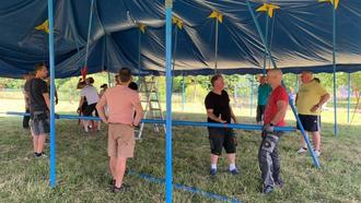 Als unsere Grundschüler das Thema „Zirkus“ für unseren diesjährigen fächerverbindenden Unterricht erfuhren, war die Aufregung groß. Damit eine echte Zirkusatmosphäre entstehen konnte, benötigte man natürlich ein Zirkuszelt mit buntem Manegenteppich. Um sich als Star in der Manege zu fühlen, brauchte jedes Kind außerdem ein entsprechendes Kostüm. Am Samstag, den 8. Juni 2024 reiste die Zirkusfamilie Neigert an. Dank vieler einsatzfreudiger Eltern, Lehrer und Hausmeister stand das Zirkuszelt nach mehrstündiger Arbeit an Ort und Stelle.