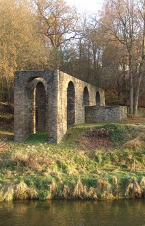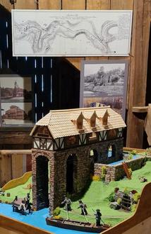 Besucher und Interessenten laden wir gern zu einer kleinen Wanderung, vom Modell zu dem Original des Kahnhebehauses mit den erhaltenen Grundmauern, an die Mulde ein.