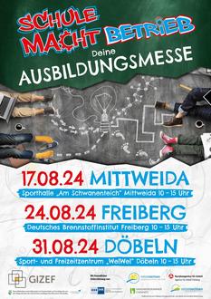 Die Ausbildungsmesse startet in diesem Jahr am 17. August von 10 - 15 Uhr im in der Sporthalle „Am Schwanenteich“ in Mittweida, gefolgt von der Messe am 24. August im DBI in Freiberg sowie am 31. August im „WelWel“ in Döbeln. Auf der Homepage www.schule-macht-betrieb.de finden Interessierte die aktualisierte Ausstellerübersicht und die vorgestellten Berufe aller drei Standorte. Auch die Broschüren sind bereits online verfügbar. Hier kann man sich im Vorfeld schon informieren und stöbern“, so Caroline Mitev, GIZEF GmbH.
