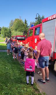 Viel Zeit blieb nicht, denn draußen warteten die Feuerwehren aus Hetzdorf, Niederschöna, Conradsdorf/Falkenberg/Tuttendorf und Oberschaar um die ABC-Schützen zu Ihren Zuckertüten in die Freizeithalle nach Hetzdorf zu bringen.
