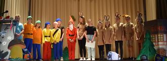 Nun startete das Programm der Viertklässler. Erste Hinweise auf das Thema fanden sich unter dem Rednerpult der Schulleiterin, eine Möhre und eine Zwergenmütze. Pepe und Mia vermissten Buchstaben und Zahlen, die sie dringend in der Schule brauchten. Zwerge und Hasen hatten sie einfach stibitzt, ohne zu wissen, was sie eigentlich bedeuten. Die neuen Erstklässler brachten erstaunliches Vorwissen ein. Sie klärten gemeinsam mit den Programmkindern die Waldbewohner zumindest mathematisch und lautgetreu auf.