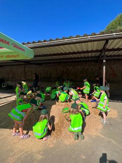 Auch Trettraktoren standen den Kindern zur Verfügung. Nach den Fahrten mit den Baufahrzeugen gab es noch eine abenteuerliche Schatzsuche. In einem riesigen Sandhaufen waren kleine Schätze in Form von Geldmünzen versteckt, welche die Kinder mit Schaufeln und Sieben zum Vorschein brachten und dann auch mitnehmen durften.