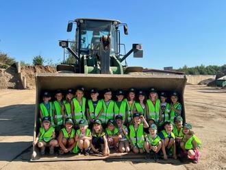 Am 13.08.24 machten sich unsere Vorschulkinder mit dem Bus auf nach Freiberg. Wir folgten einer herzlichen Einladung der LSTW GmbH zum Hoftag. Zunächst hieß uns Herr Vogt (Mitarbeiter der LSTW GmbH) willkommen und führte uns über das Gelände. Vorab stand der Arbeitsschutz an oberster Stelle. Herr Vogt erklärte den Kindern, wie wichtig es ist auf der Baustelle gesehen zu werden. Jedes Kind bekam eine Leuchtweste an und ein Basecap auf. Zuerst gingen wir zu einem großen Lagerplatz. Dort gab es große Abwasserrohre. Herr Vogt erklärte uns, dass diese Rohre unter den Straßen verlegt werden und für den Transport von Abwasser dienen. Die Kinder durften sogar in einen Abwasserkanal hineinschauen.