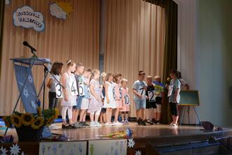 Der Trick bestand nun darin, während der Festrede Augen und Mund zu schließen, die Zaubermuschel in den Händen zu spüren und ganz fest an große Zuckertüten zu glauben. Sollte das gelingen, gab es noch ein Sahnehäubchen oben drauf. Am Montag dürfen die Muscheln dann ins Wasserbad und würden vielleicht einen kostbaren Inhalt preisgeben. Wer weiß…. Nachdem die Kinder mucksmäuschenstill waren und diese erste Aufgabe mit Bravour bestanden hatten, begeisterten die Viertklässler mit dem live gesungenen Musical „Ach du meine Tüte“.