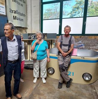 Am 16.09.2023 ging es für Mitglieder des Heimatvereins zur Exkursion in das Straßenbahnmuseum Leipzig, Apelstraße 1. Der Holzhausener und Vorstand der Arbeitsgemeinschaft "Historische Nahverkehrsmittel Leipzig" Jürgen Süß führte uns mit sachkundigen Erläuterungen durch den historischen Straßenbahnhof sowie der Werkstatt und vermittelte uns ein anschauliches Bild der Geschichte des Leipziger Nahverkehrs. Zur Freude vieler Vereinsmitglieder konnten wir uns im Doppelstockbus der "Linie H" hinter die Panoramascheibe im oberen Stock setzen. Das war früher das Highlight für uns! Vielen Dank für den abwechslungsreichen Rundgang an Herrn Süß.